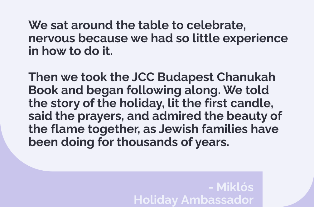 Lay leadership at JCC Budapest begins with rebuilding confidence in lived Jewish practice, particularly through the Holiday Ambassadors program. Community members receive practical knowledge, resources, and hands-on support—such as holiday toolkits, guidance, and shared learning—that empower them to host Jewish holidays and rituals in their own homes and peer networks. By lowering barriers and focusing on learning through doing, the program enables families and individuals to celebrate Jewish life with confidence, often for the first time. Alongside this, youth leaders (madrichim) develop as informal educators through year-round engagement, while Mini Boards, governance roles, and committees invite committed community members to shape programs, strategy, and institutional direction. Together, these pathways foster ownership, shared responsibility, and long-term leadership within the community.
